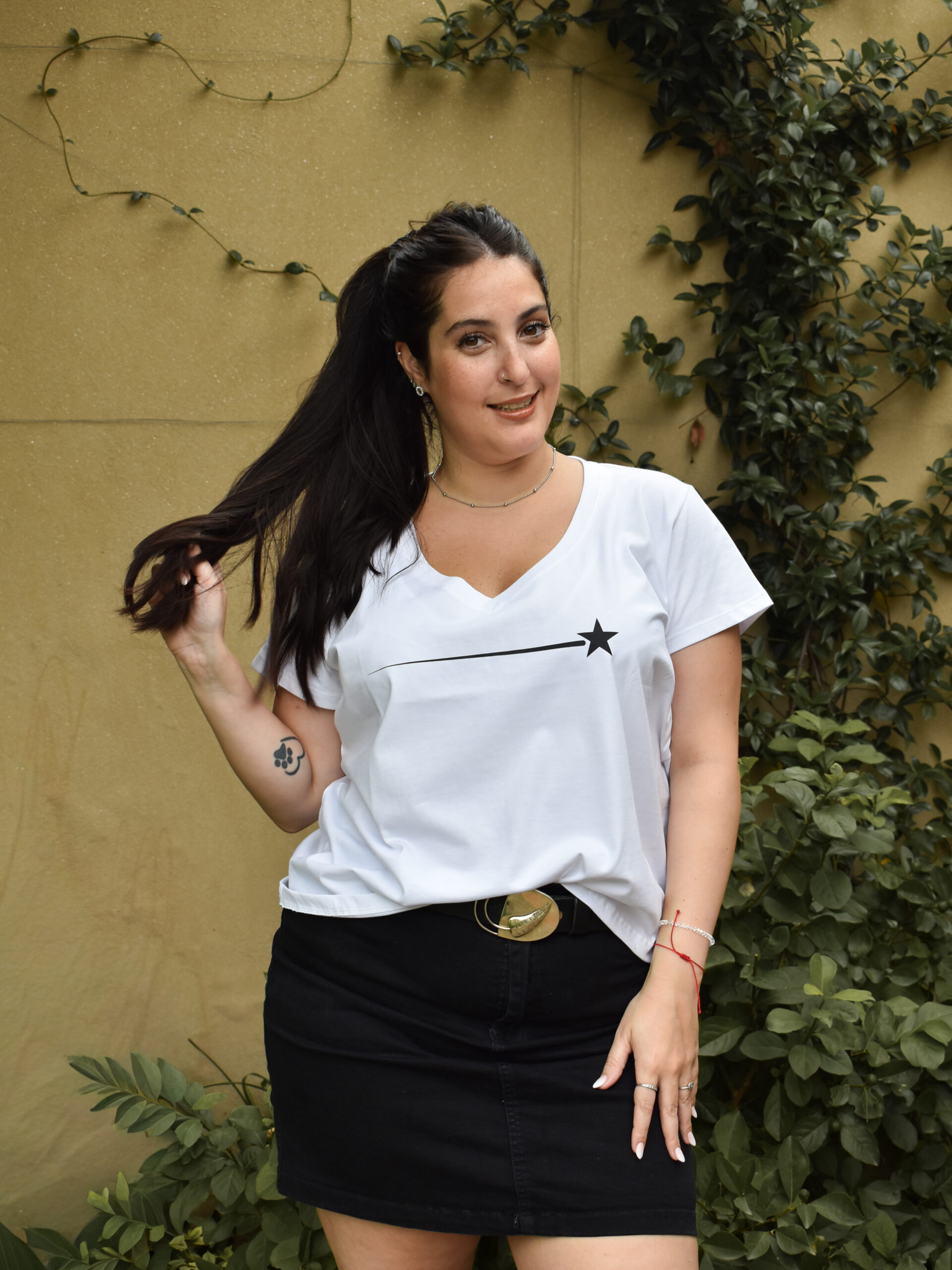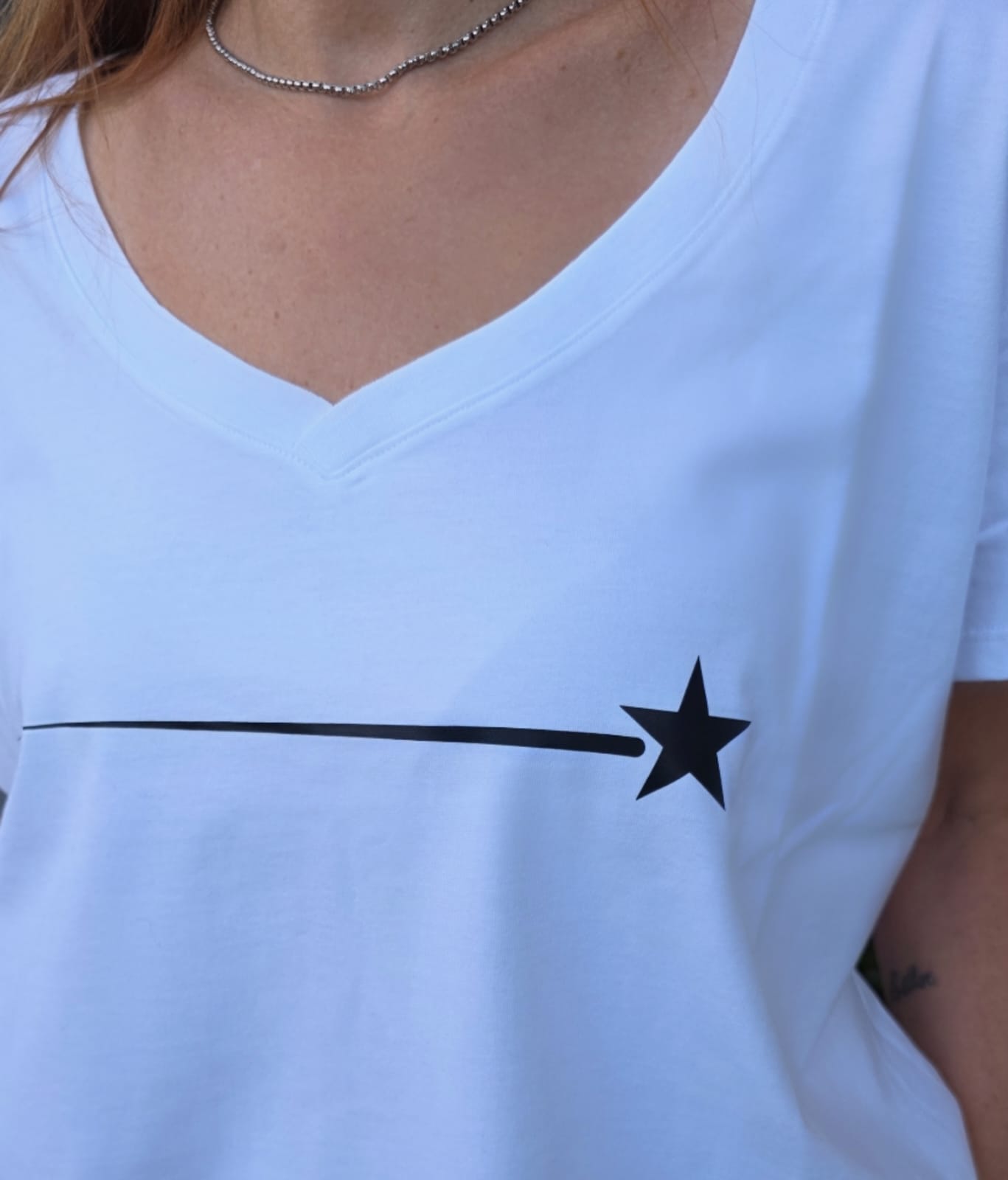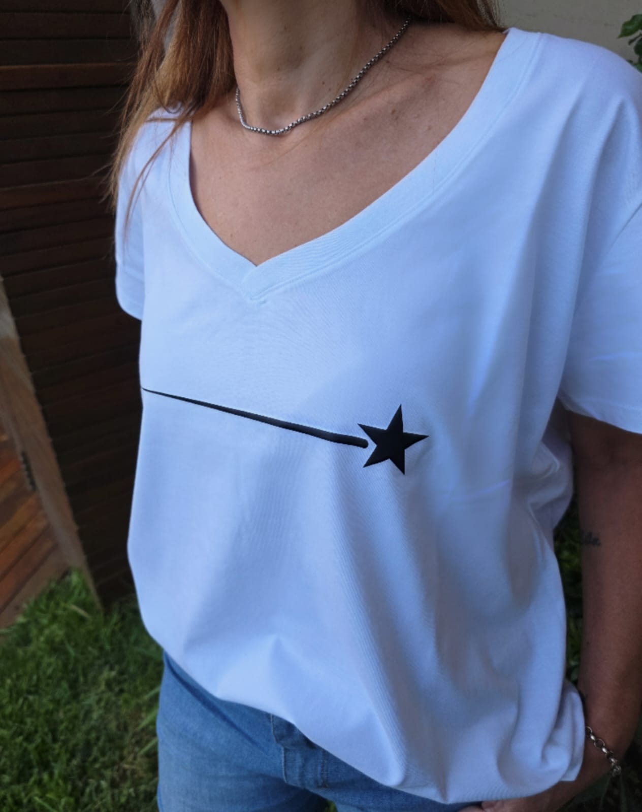Remera Escote V. Estampa Estrella DTF Algodón Premium.