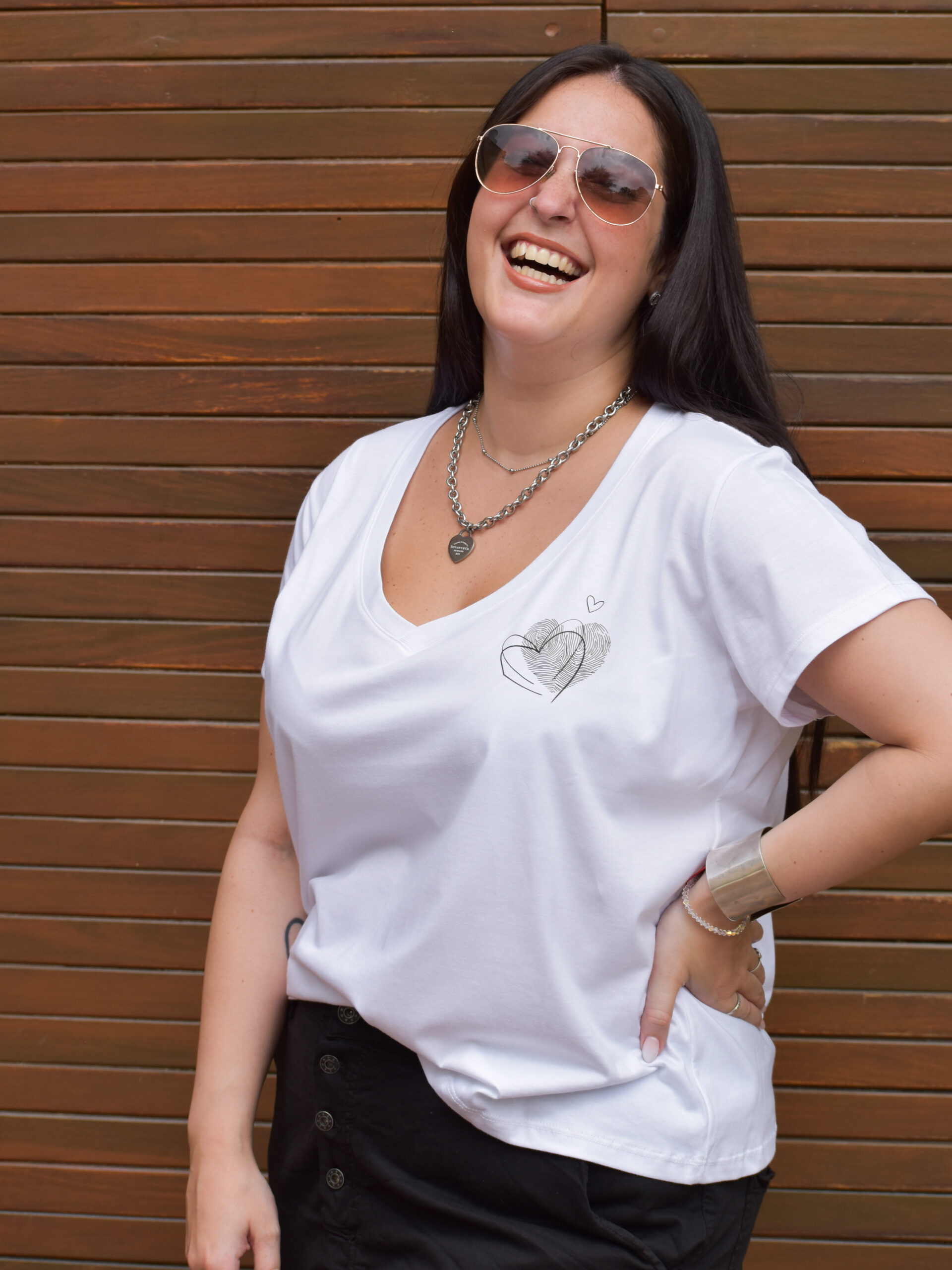 Remera Escote V. Estampa Con Huella DTF Algodón Premium.
